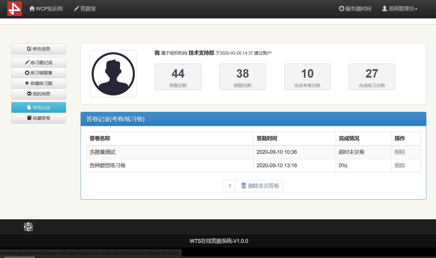 用戶在答题室中随机抽取本答题室中的题目进行题目练习,在练习过程中可随时查看答案和终止练习,系统实时显示练习结果和正确情况。