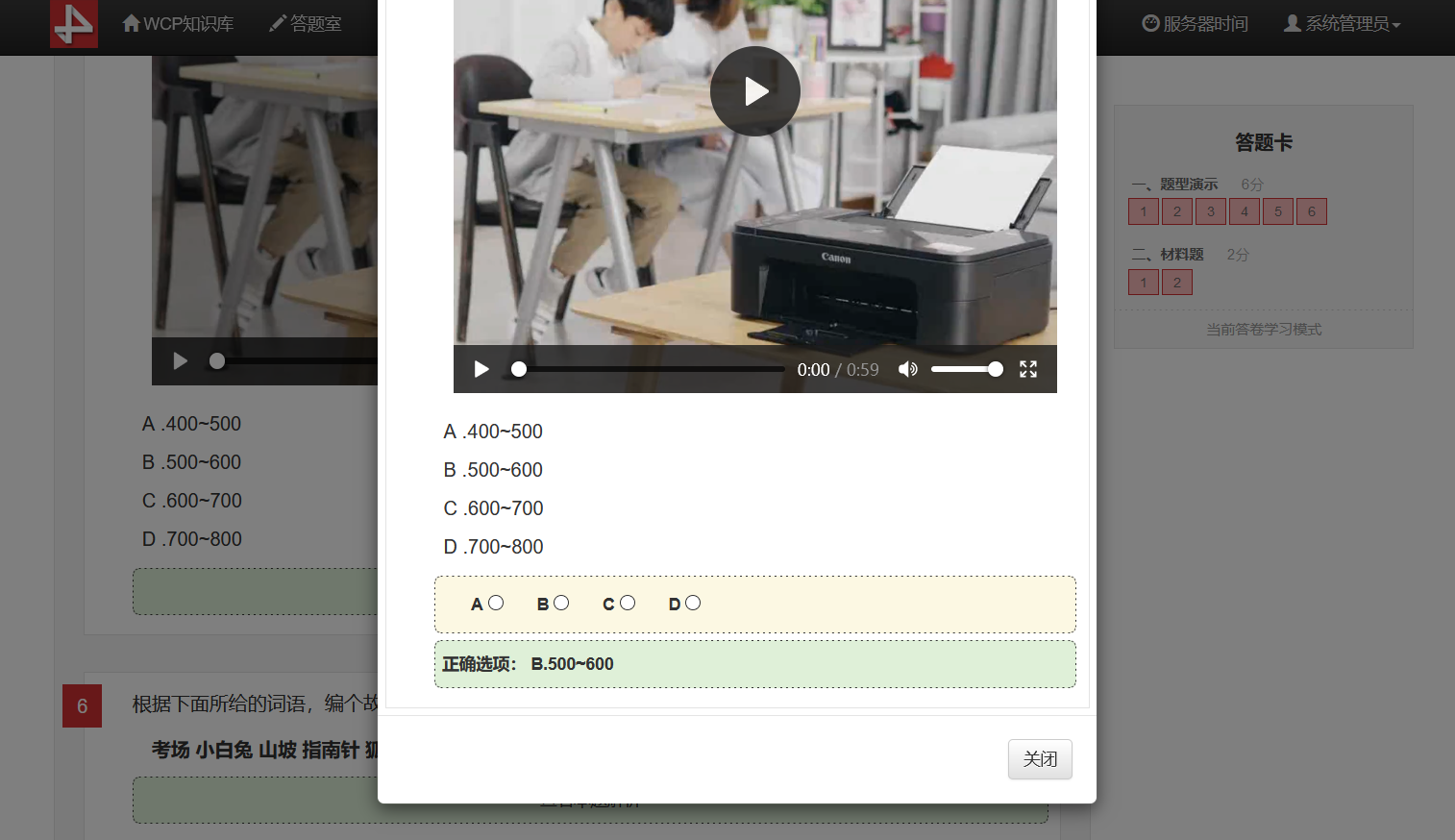 支持 单选题 / 多选题 / 填空题 / 问答题 / 视频题 / 音频题 / 判断题